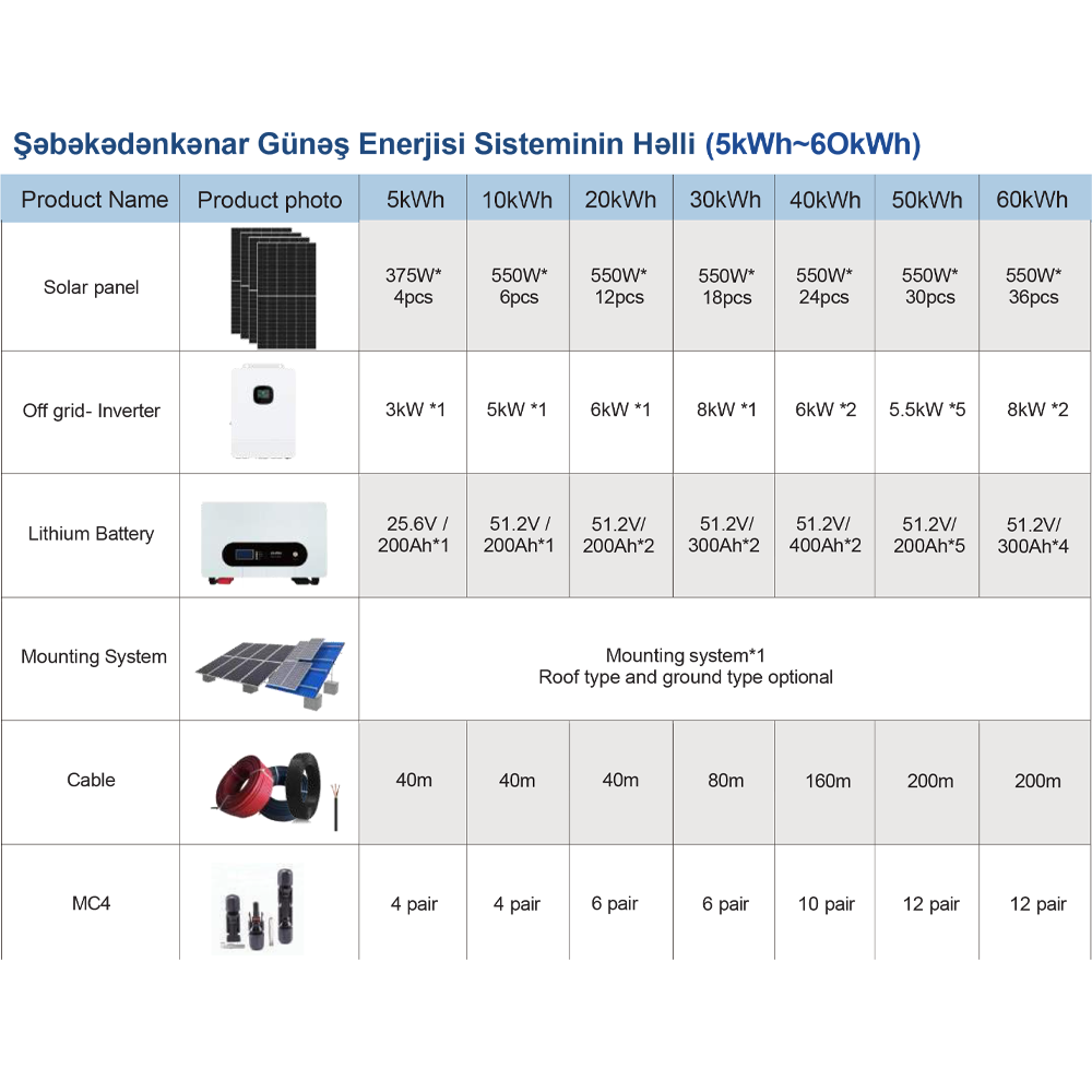 5kWh-dan 60kWh-a qədər fərqli həllər